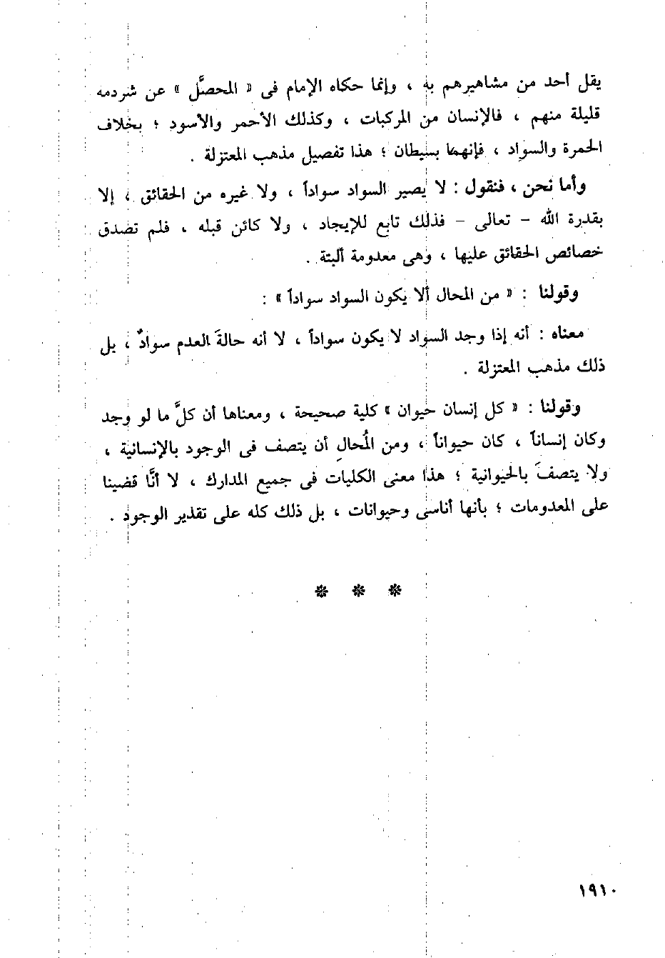 معناه: أنه إذا وجد السواد لا يكون سوادا، لا أنه حالة العدم سواد، بل ذلك مذهب المعتزلة.