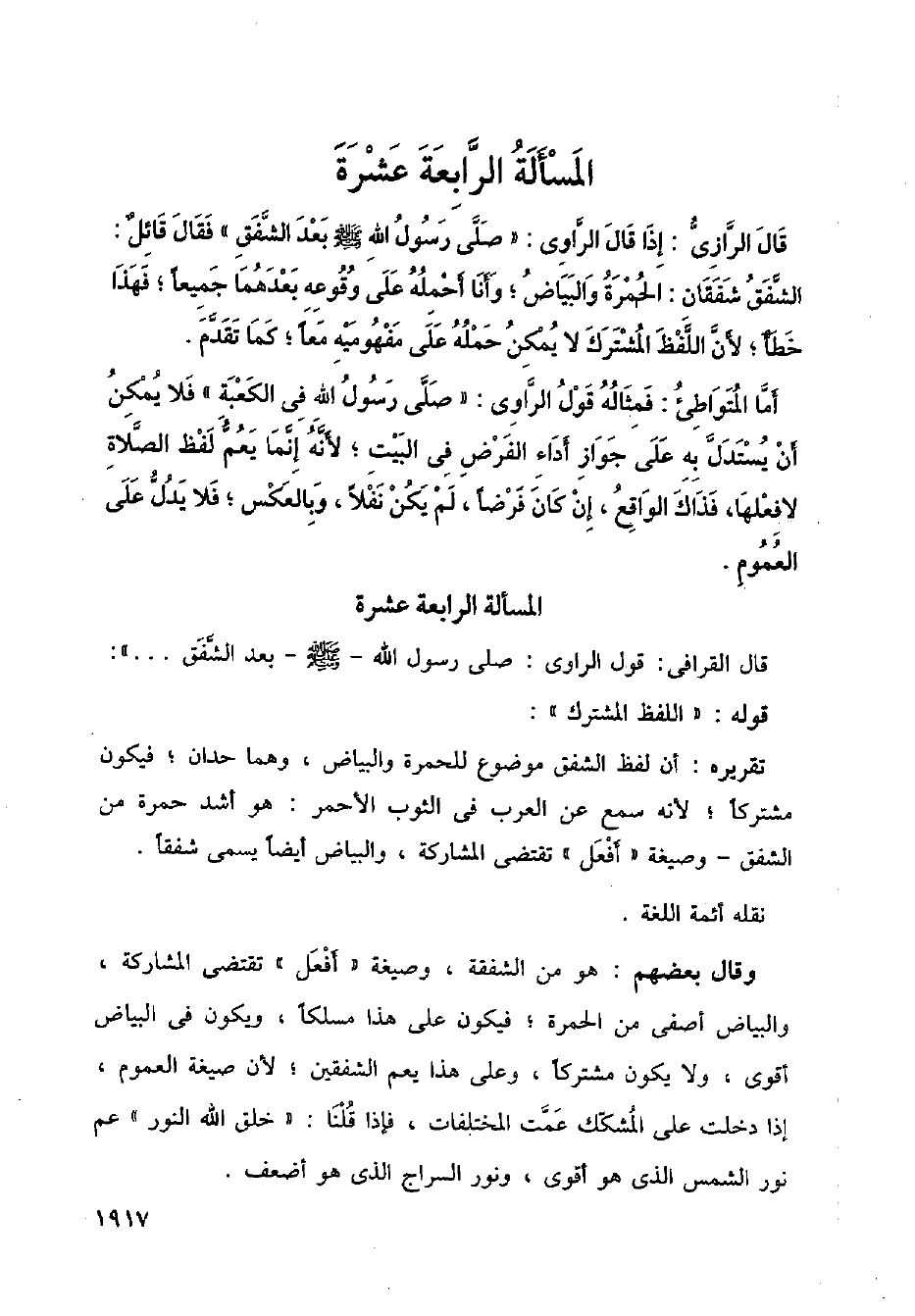 المسألة الرابعة عشرة