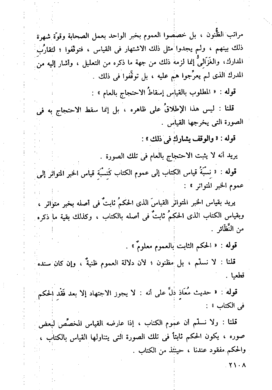 مراتب الظنون، بل خصصوا العموم بخر الواحد بعمل الصحابة وقوة شهرة ذلك بينهم، ولم يجدوا مثل ذلك الاشتهار في القياس، فتوقفوا؛ لتقارب المدارك، والغزالي إنما لزمه ذلك من جهة ما ذكره من التعليل، وأشار إليه من المدرك الذي لم يعرجوا هم عليه، بل توقفوا في ذلك.