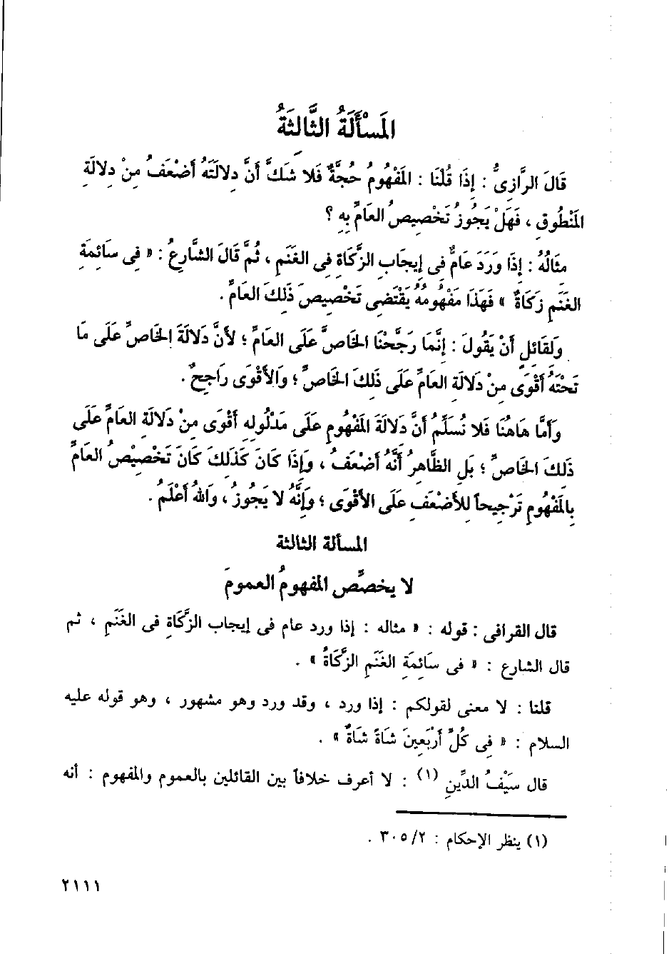 وأما هاهنا فلا نسلم أن دلالة المفهوم على مدلوله أقوى من دلالة العام على ذلك الخاص؛ بل الظاهر أنه أضعف، وإذا كان كذلك كان تخصيص العام بالمفهوم ترجيحًا للأضعف على الأقوى؛ وإنه لا يجوز، والله أعلم.