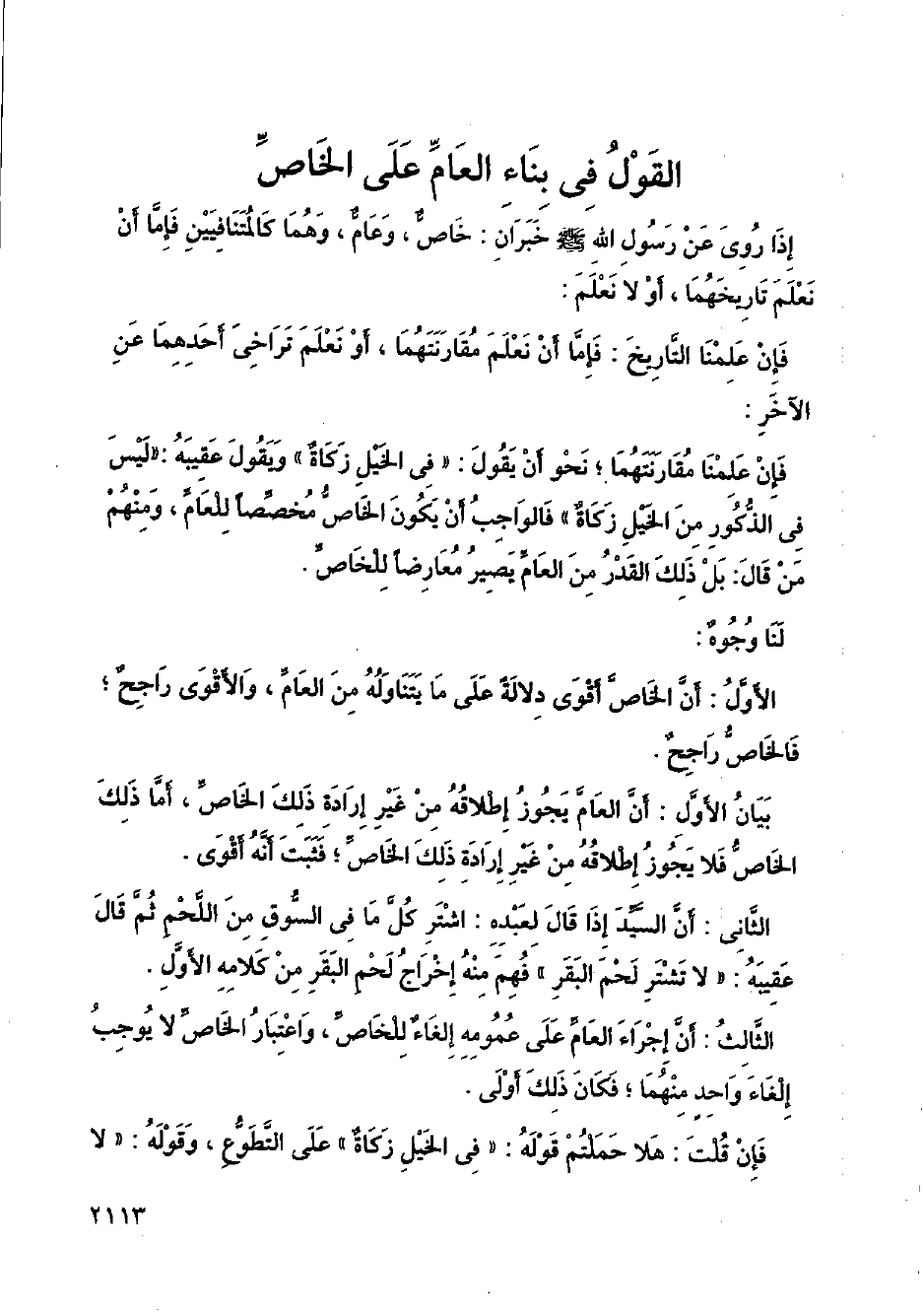 القول في بناء العام على الخاص