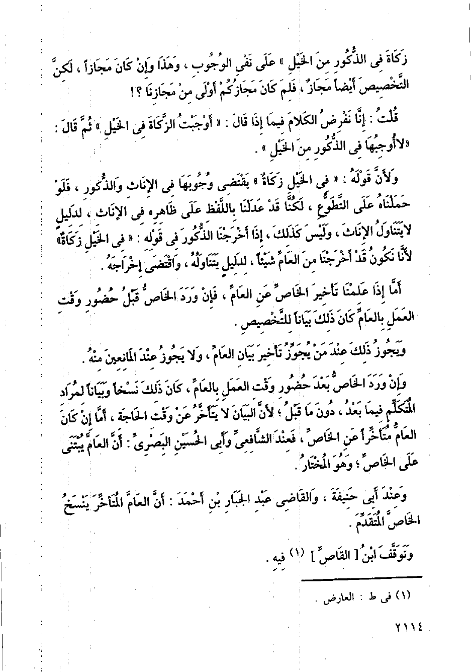 ولأن قوله: (في الخيل زكاة) يقتضي وجوبها في الإناث والذكور، فلو حملناه على التطوع، لكنا قد عدلنا باللفظ على ظاهره في الإناث، لدليل لا يتناول الإناث، وليس كذلك، إذا أخرجنا الذكور في قوله: (في الخيل زكاة) لأنا نكون قد أخرجنا من العام شيئًا، لدليل يتناوله، واقتضي إخراجه.