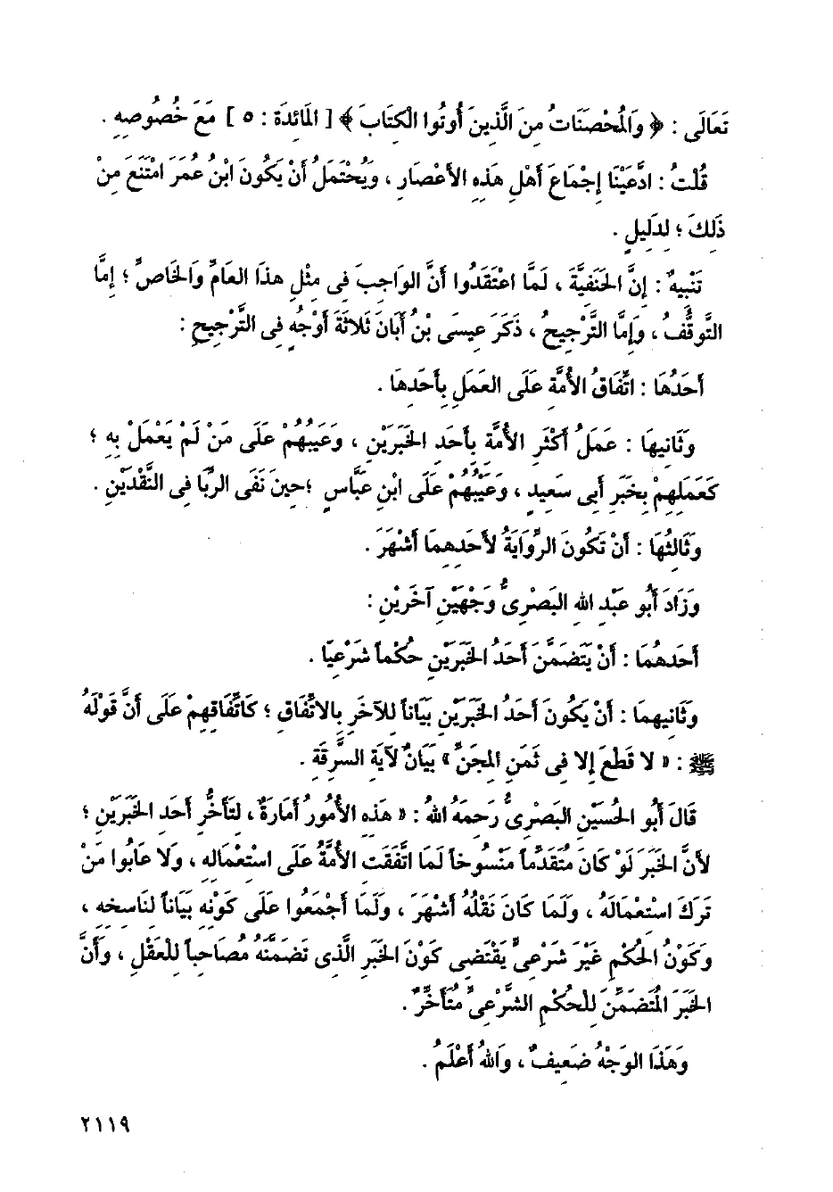 وثانيها: عمل أكثر الأمة بأحد الخبرين، وعيبهم على من لم يعمل به؛ كعملهم بخبر أبي سعيد، وعيبهم على ابن عباس؛ حين نفى الربا في النقدين.