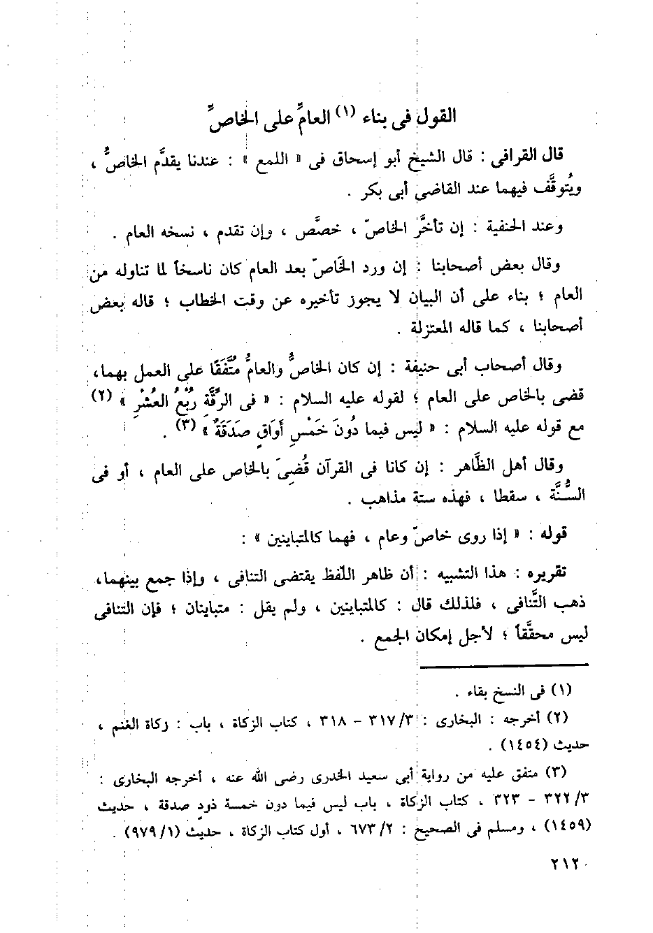 وقال أصحاب أبي حنيفة: إن كان الخاص والعام متفقًا على العمل بهما، قضي الخاص على العام، لقوله عليه السلام: (في الرقة ربع العشر) مع قوله عليه السلام: (ليس فيما دون خمس أواق صدقة).