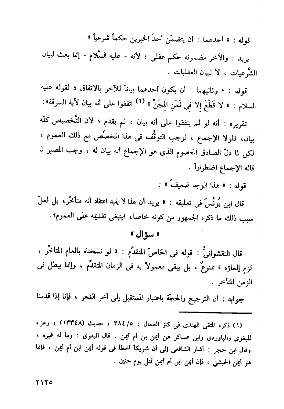 يريد: والآخر مضمونه حكم عقلي؛ لأنه- عليه السلام- إنما بعث لبيان الشرعيات، لا لبيان العقليات.