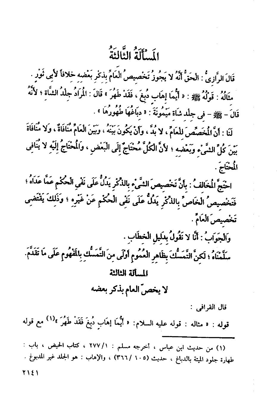 قوله: (مثاله: قوله عليه السلام: (أيما إهاب دبغ فقد طهر) مع قوله