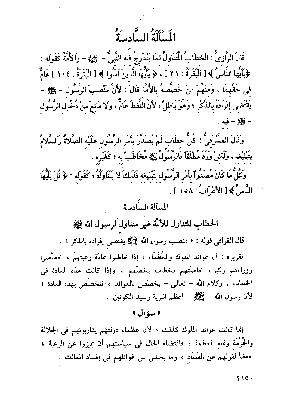 قال القرافي قوله: (منصب رسول الله - صلى الله عليه وسلم - يقتضي إفراده بالذكر):