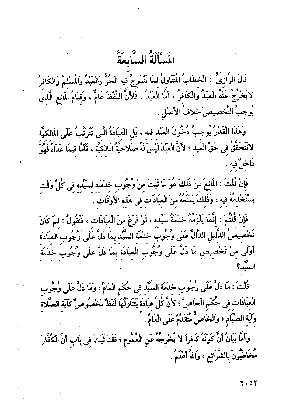 فإن قلتم: إنما يلزمه خدمة سيده، لو فرغ من العبادات، فنقول: لم كان تخصيص الدليل الدال على وجوب خدمة السيد بما دل على وجوب العبادة أولى من تخصيص ما دل على وجوب العبادة بما دل على وجوب خدمة السيد؟
