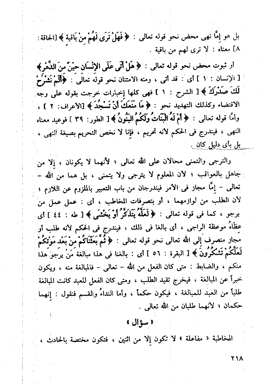 بل هو إمّا نهي محض نحو قوله تعالى: ((فهل ترى لهم من باقية)) الحاقة: 8 معناه: لا ترى لهم من باقية.