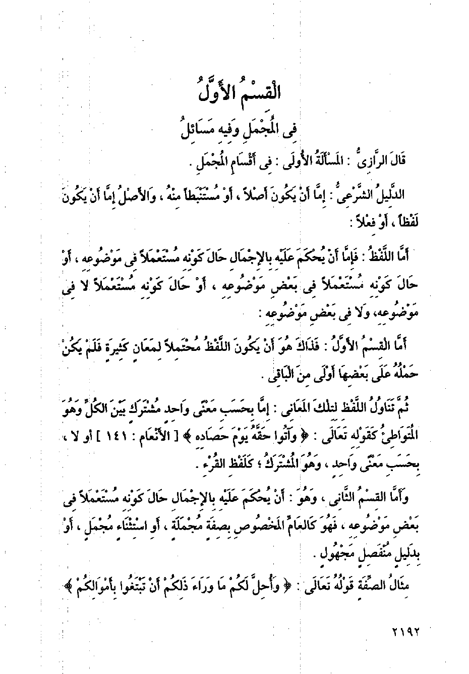 قال الرازي: المسألة الأولى: في أقسام المجمل.