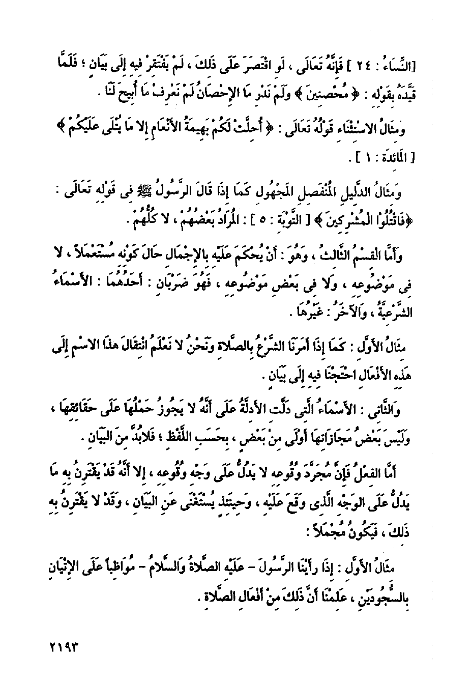 [النساء: 24] فإنه تعالى، لو اقتصر على ذلك، لم يفتقر فيه إلى بيان؛ فلما قيده بقوله: {محصنين} ولم ندر ما الإحصان لم نعرف ما أبيح لنا.
