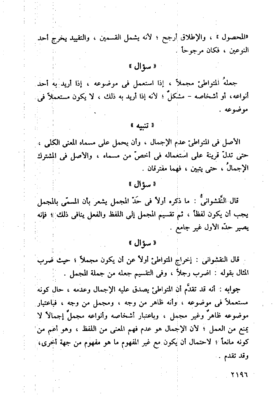 قال النقشواني: إخراج المتواطئ أولاً عن أن يكون مجملاً؛ حيث ضرب المثال بقوله: اضرب رجلاً، وفي التقسيم جعله من جملة المجمل.