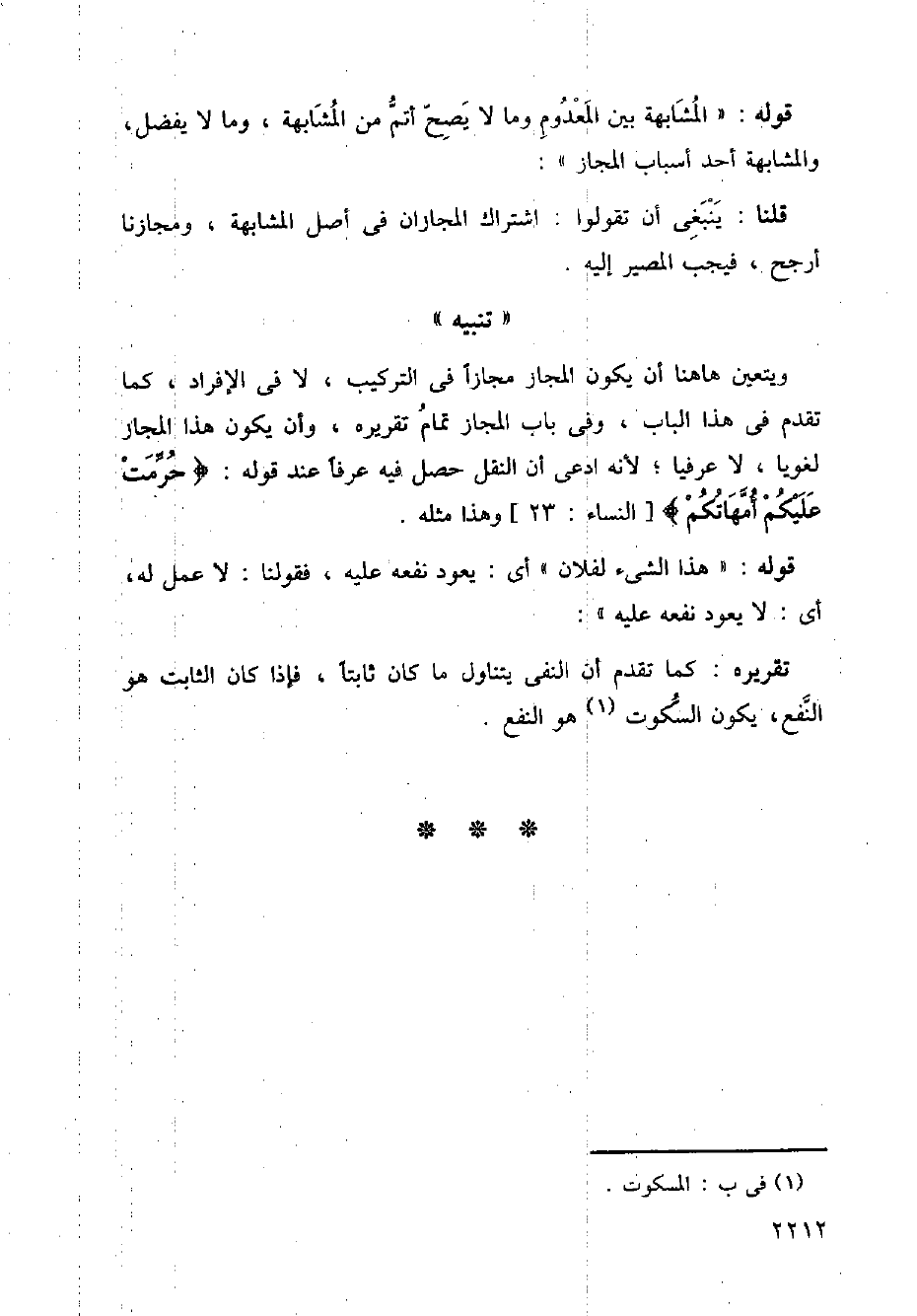 قوله: (المشابهة بين المعدوم وما لا يصح أتم من المشابهة، وما لا يفضل، والمشابهة أحد أسباب المجاز):