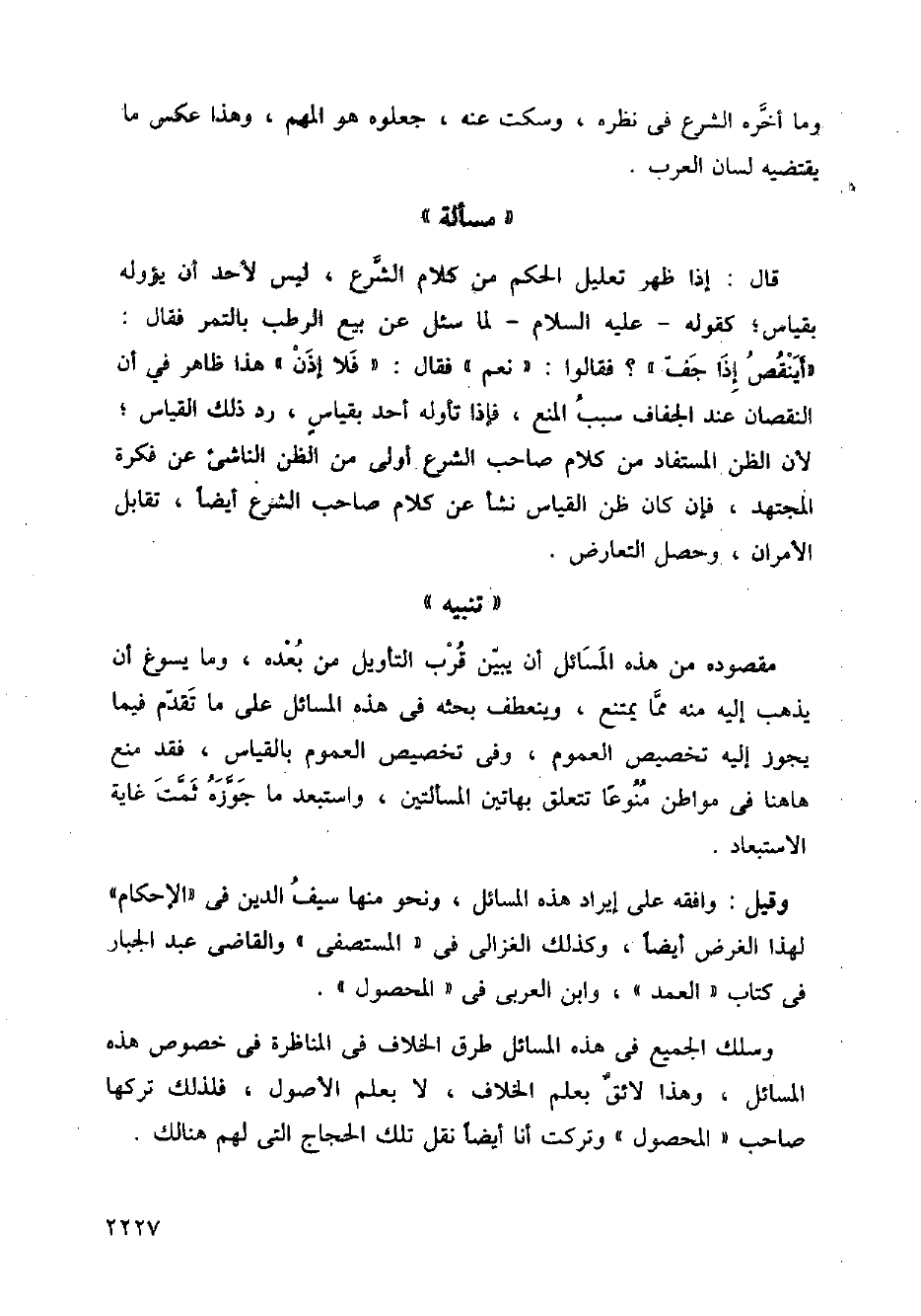 وسلك الجميع في هذه المسائل طرق الخلاف في المناظرة في خصوص هذه المسائل، وهذا لائق بعلم الخلاف، لا بعلم الأصول، فلذلك تركها صاحب (المحصول) وتركت أنا أيضًا نقل تلك الحجاج التي لهم هنالك.