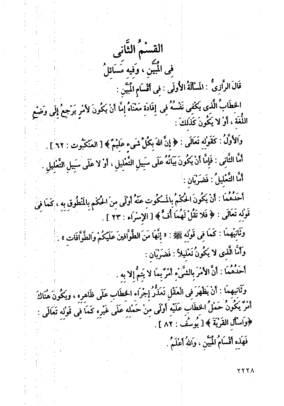 قال الرازي: المسألة الأولى: في أقسام المبين: