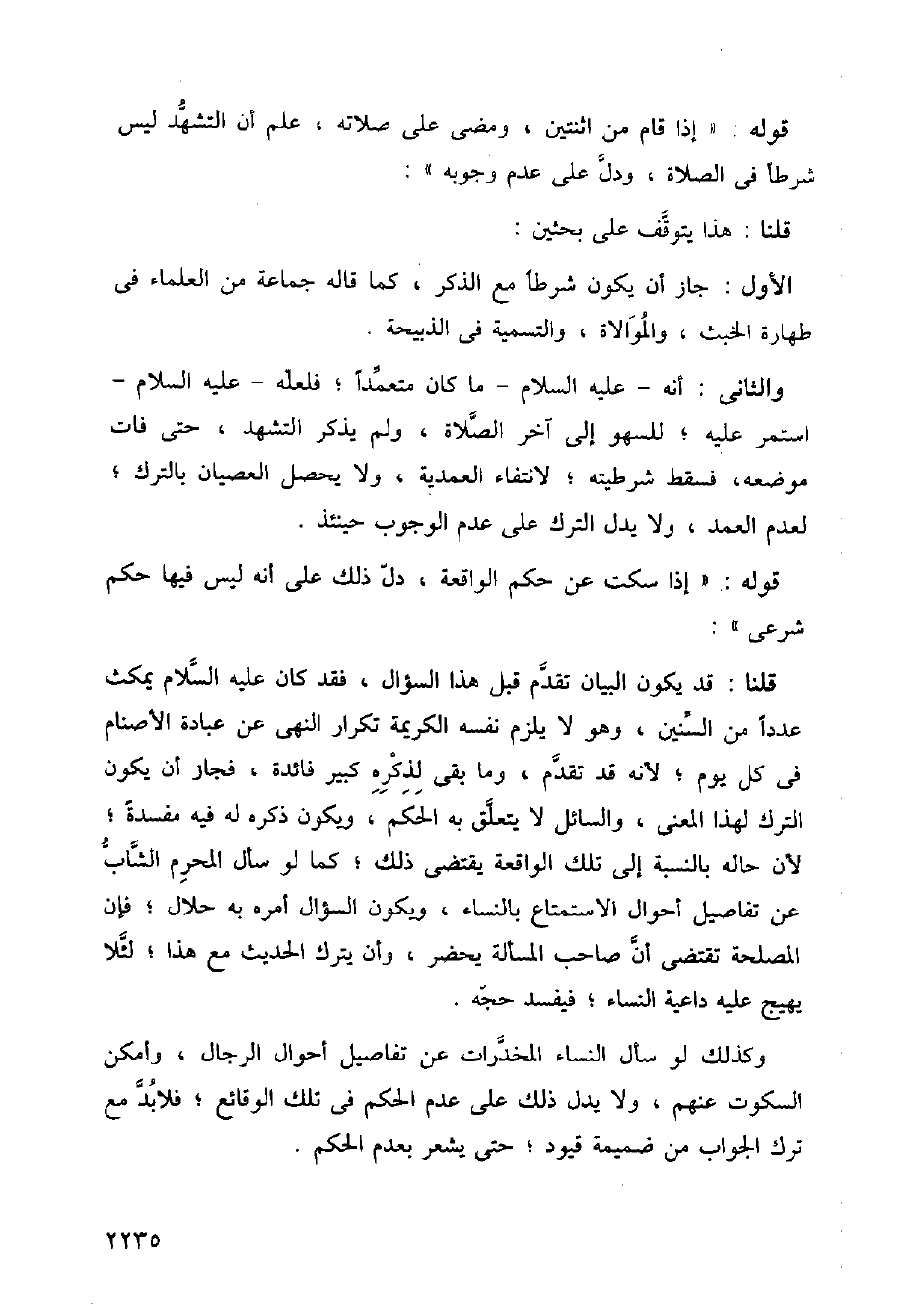 وكذلك لو سأل النساء المخدرات عن تفاصيل أحوال الرجال، وأمكن السكوت عنهم، ولا يدل ذلك على عدم الحكم في تلك الوقائع؛ فلابد مع ترك الجواب من ضميمة قيود؛ حتى يشعر بعدم الحكم.