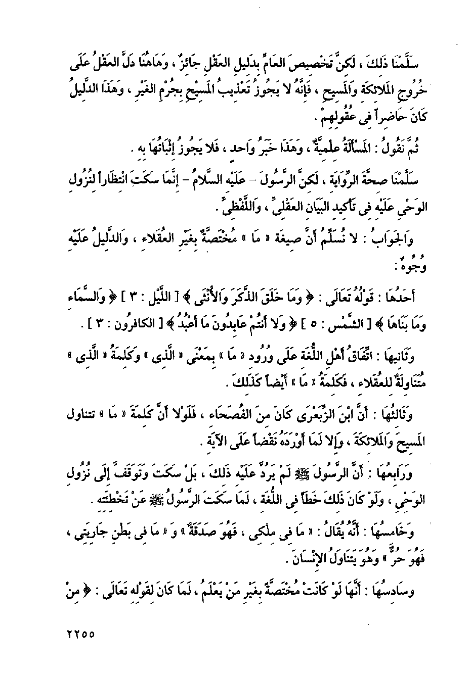 والجواب: لا نسلم أن صيغة (ما) مختصة بغير العقلاء، والدليل عليه وجوه: