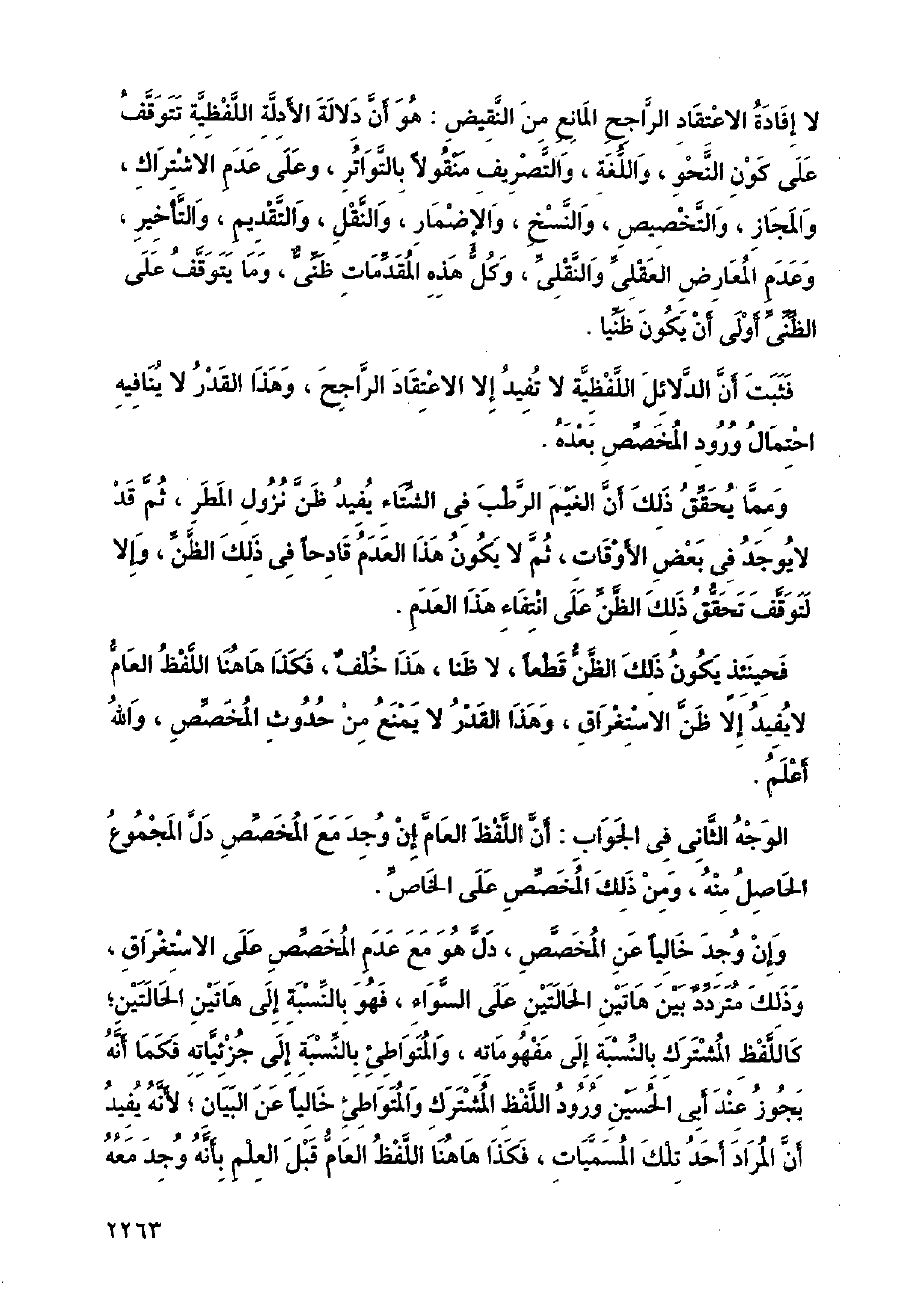 فثبت أن الدلائل اللفظية لا تفيد إلا الاعتقاد الراجح، وهذا القدر لا ينافيه احتمال ورود المخصص بعده.
