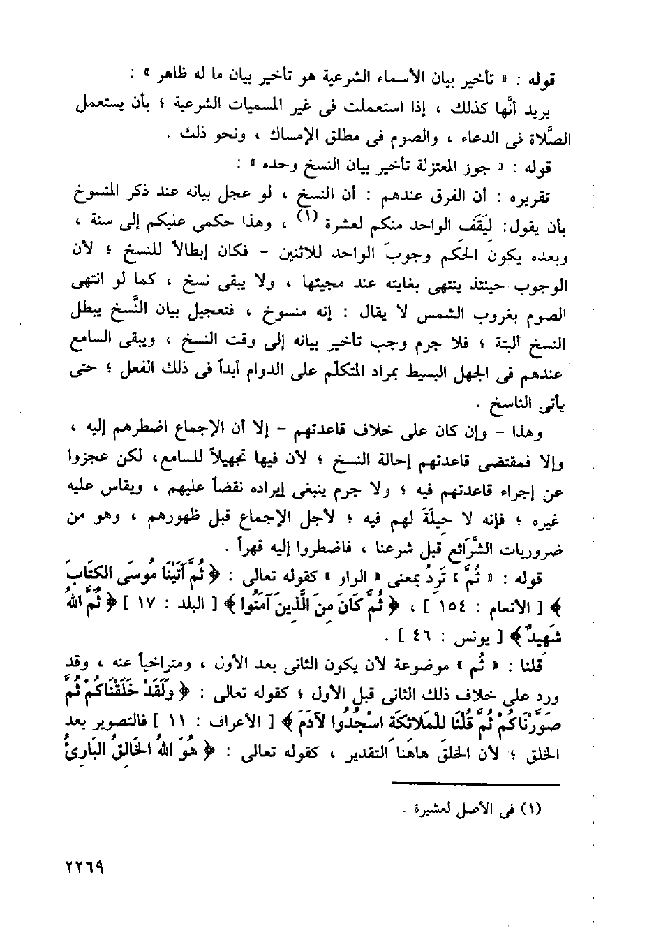 قلنا: (ثم) موضوعة لأن يكون الثاني بعد الأول، ومتراخيًا عنه، وقد ورد على خلاف ذلك الثاني قبل الأول؛ كقوله تعالى: {ولقد خلقناكم ثم صورناكم ثم قلنا للملائكة اسجدوا لآدم} [الأعراف: 11] فالتصوير بعد الخلق؛ لأن الخلق هاهنا التقدير، كقوله تعالى: {هو الله الخالق البارئ