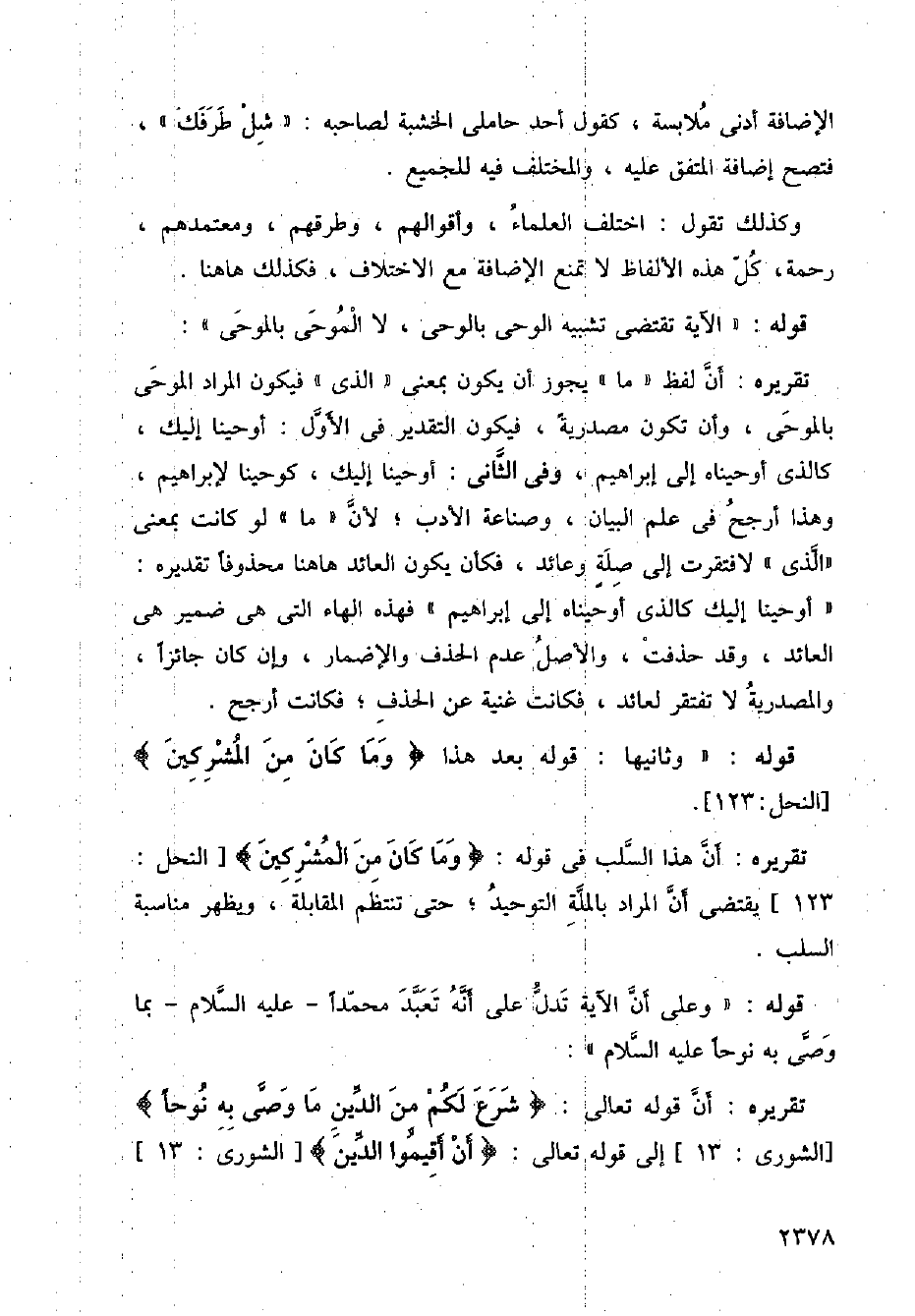 تقريره: أن هذا السلب في قوله: {وما كان من المشركين} [النحل: 123] يقتضي أن المراد بالملة التوحيد؛ حتى تنظم المقالبلة، ويظهر مناسبة السلب.