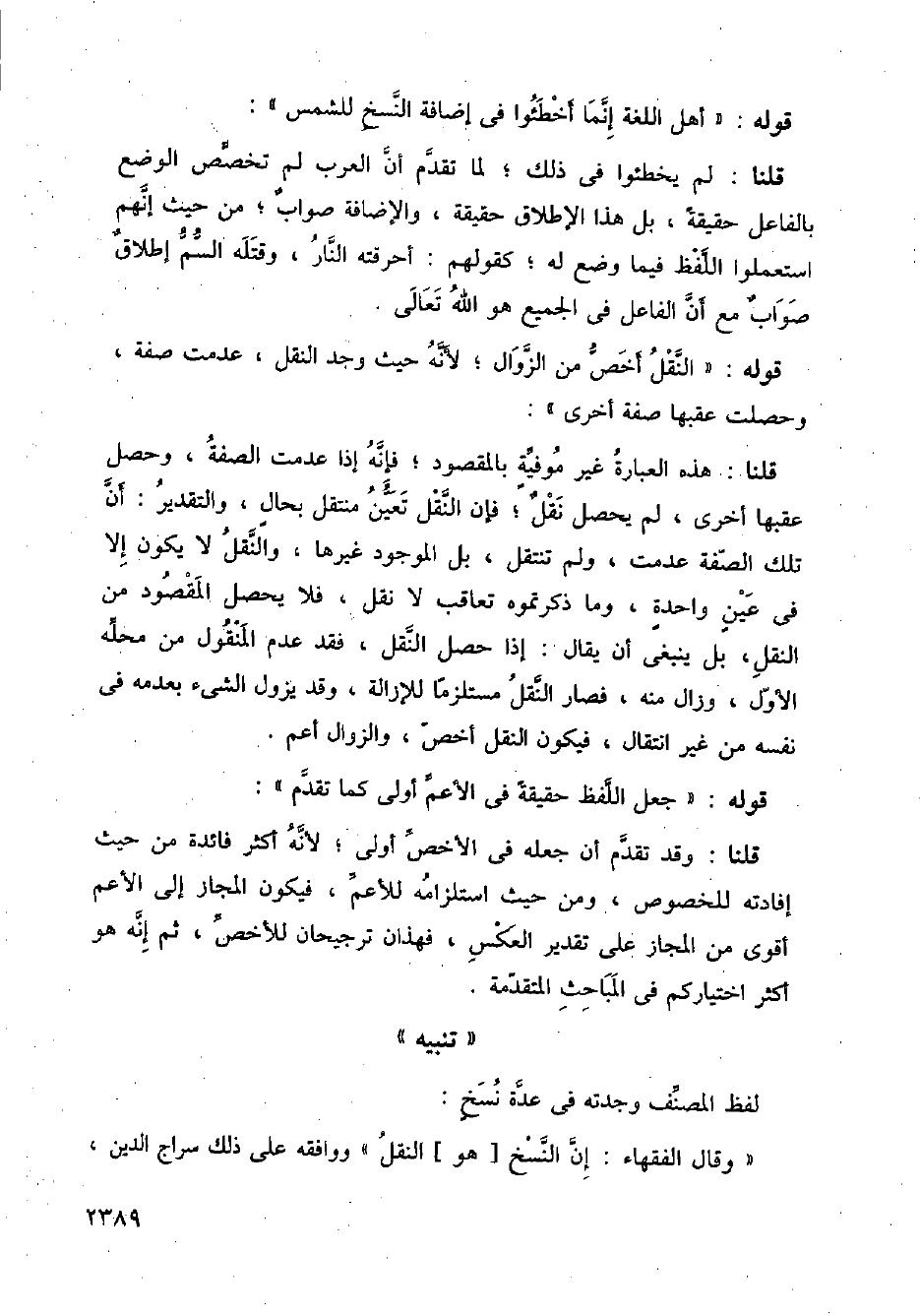 " وقال الفقهاء: إن النسخ [هو] النقل " ووافقه على ذلك سراج الدين،
