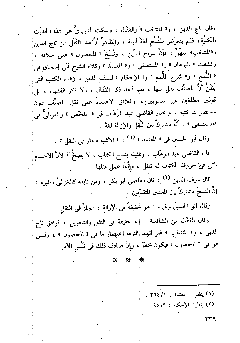 وقال تاج الدين، و (المنتخب) والقفال، وسكت التبريزي عن هذا الحديث بالكلية، فلم يتعرض للنسخ لغة ألبتة، والظاهر أن هذا النقل من تاج الدين و (المنتخب) سهو، فإن سراج الدين، ونسخ (المحصول) على خلافه، وكشفت " البرهان " و " المستصفى " و " المعتمد " وكلام الشيخ أبي إسحاق في " اللمع " و" شرح اللمع " و " الإحكام " لسيف الدين، وهذه الكتب التي يظن أن المصنف نقل منها، فلم أجد ذكر القفال، ولا ذكر الفقهاء، بل قولين مطلقين غير منسوبين، واللائق الاعتماد على نقل المصنف دون مختصرات كتبه، واختار القاضي عبد الوهاب في " الملخص " والغزالي في " المستصفى ": أنه مشترك بين النقل والإزالة لغة.