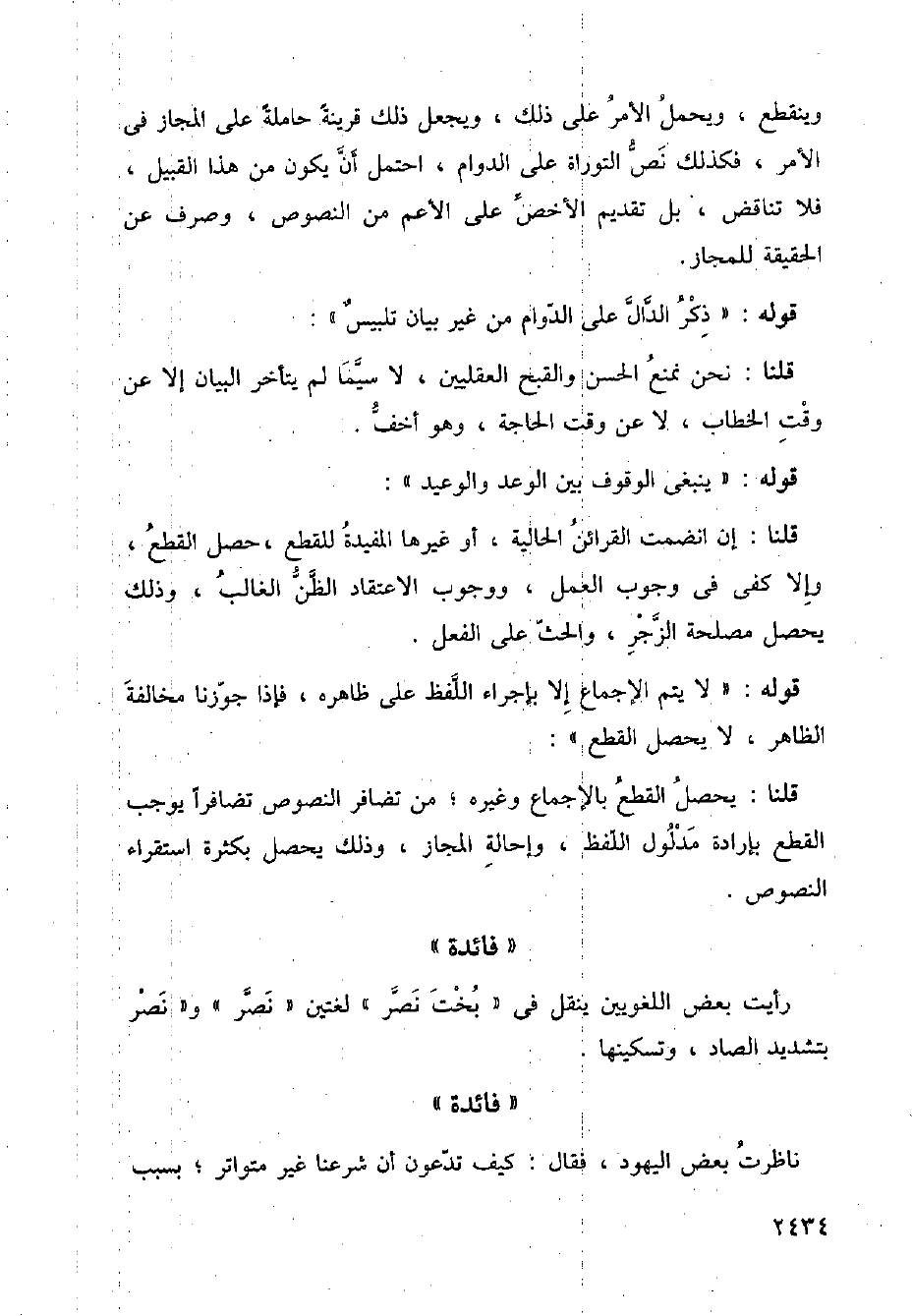 وينقطع، ويحمل الأمر على ذلك، ويجعل ذلك قرينة حاملة على الجاز في الامر، فكذلك نص التوراة على الدوام، احتمل أن يكون من هذا القبيل، فلا تناقض، بل تقديم الأخص على الأعم من النصوص، وصرف عن الحقيقة للمجاز.