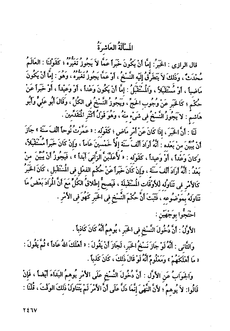والثاني: أنه لو جاز نسخ الخبر، لجاز أن يقول: (أهلك الله عادًا) ثم يقول: (ما أهلكهم) ومعلوم أنه لو قال ذلك، كان كذبًا.