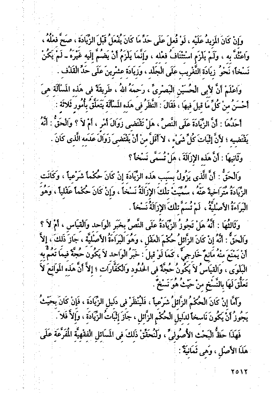 أحدها: أن الزيادة على النص، هل تقتضي زوال أمر، أم لا؟ والحق: أنه يقتضيه؛ لأن إثبات كل شيء، لا أقل من أن يقتضي زوال عدمه الذي كان.
