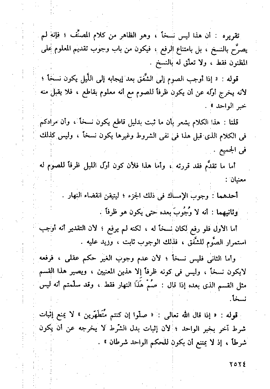 وأما الثاني فليس نسخا؛ لأن عدم وجوب الغير حكم عقلي، فرفعه لا يكون نسخا، وليس في كونه ظرفا إلا هذين المعيين، ويصير هذا القسم مثل القسم الذي بعده إذا قال: صم هذا النهار فقط، وقد سلمتم أنه ليس نسخا.