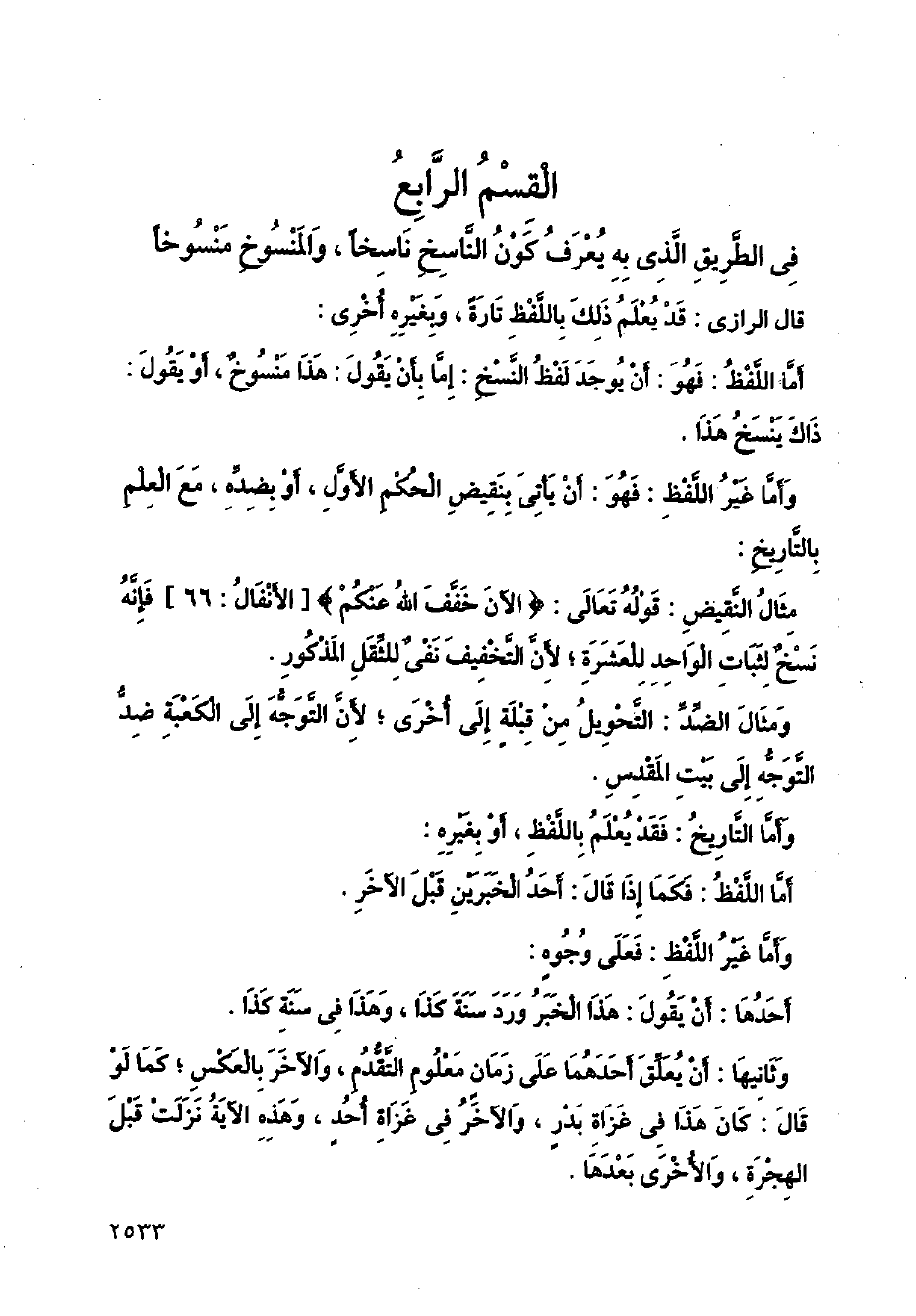 في الطريق الذي به يعرف كون الناسخ ناسخًا، والمنسوخ منسوخًا قال الرازي: قد يعلم ذلك باللفظ تارةً، وبغيره أخرى: