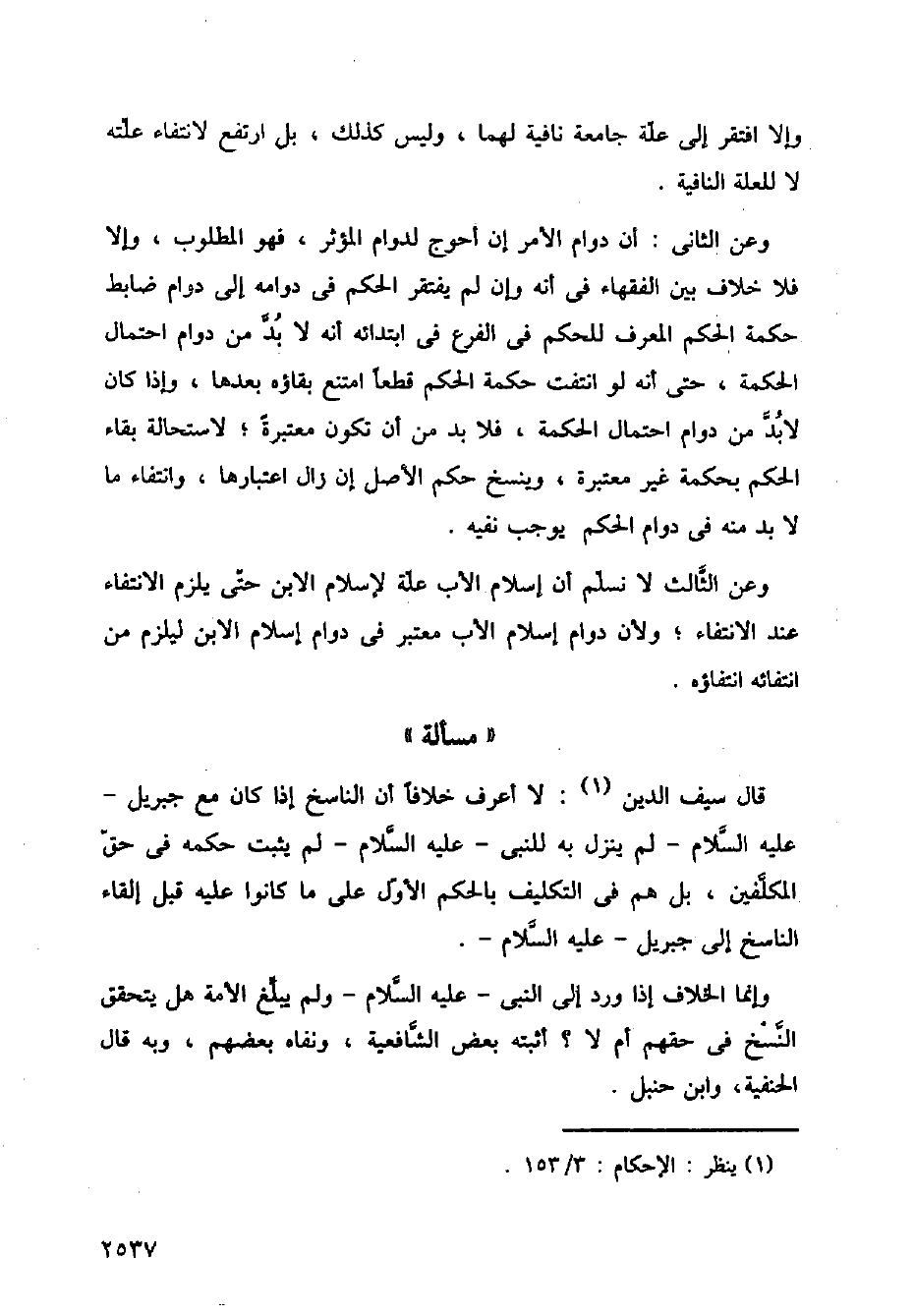 وعن الثاني: أن دوام الأمر إن أحوج لدوام المؤثر، فهو المطلوب، وإلا فلا خلاف بين الفقهاء في أنه وإن لم يفتقر الحكم في دوامه إلى دوام ضابط حكمة الحكم المعرف للحكم في الفرع في ابتدائه أنه لابد من دوام احتمال الحكمة، حتى أنه لو انتفت حكمة الحكم قطعًا امتنع بقاؤه بعدها، وإذا كان لابد من دوام احتمال الحكمة، فلابد من أن تكون معتبرةً؛ لاستحالة بقاء الحكم بحكمة غير معتبرة، وينسخ حكم الأصل إن زال اعتبارها، وانتفاء ما لابد منه في دوام الحكم يوجب نفيه.