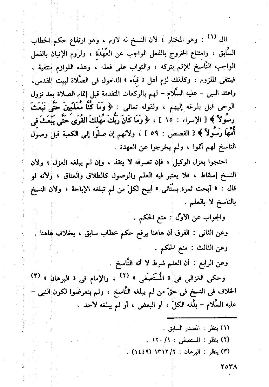قال: وهو المختار؛ لأن النسخ له لازم، وهو ارتفاع حكم الخطاب السابق، وامتناع الخروج بالفعل الواجب عن العهدة، ولزوم الإتيان بالفعل الواجب الناسخ للإثم بتركه، والثواب على فعله، وهذه اللوازم منتفية، فينتفي الملزوم، وكذلك لزم أهل (قباء) الدخول في الصلاة لبيت المقدس، واعتد النبي - عليه السلام - لهم بالركعات المتقدمة قبل إتمام الصلاة بعد نزول الوحي قبل بلوغه إليهم، ولقوله تعالى:} وما كنا معذبين حتى نبعث رسولا {[الإسراء:15]،} وما كان ربك مهلك القرى حتى يبعث في أمها رسولا {[القصص:59]، ولأنهم إن صلوا إلى الكعبة قبل وصول الناسخ لهم أتموا، ولم يخرجوا عن العهدة.