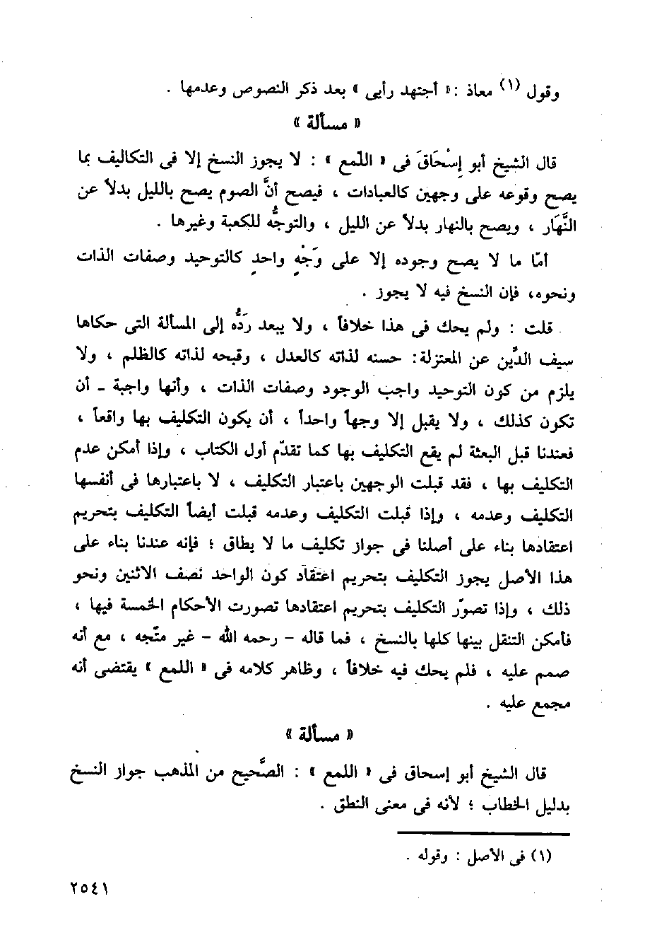 قال الشيخ أبو إسحاق في (اللمع): لا يجوز النسخ إلا في التكاليف بما يصح وقوعه على وجهين كالعبادات، فيصح أن الصوم يصح بالليل بدلا عن النهار، ويصح بالنهار بدلا عن الليل، والتوجه للكعبة وغيرها.