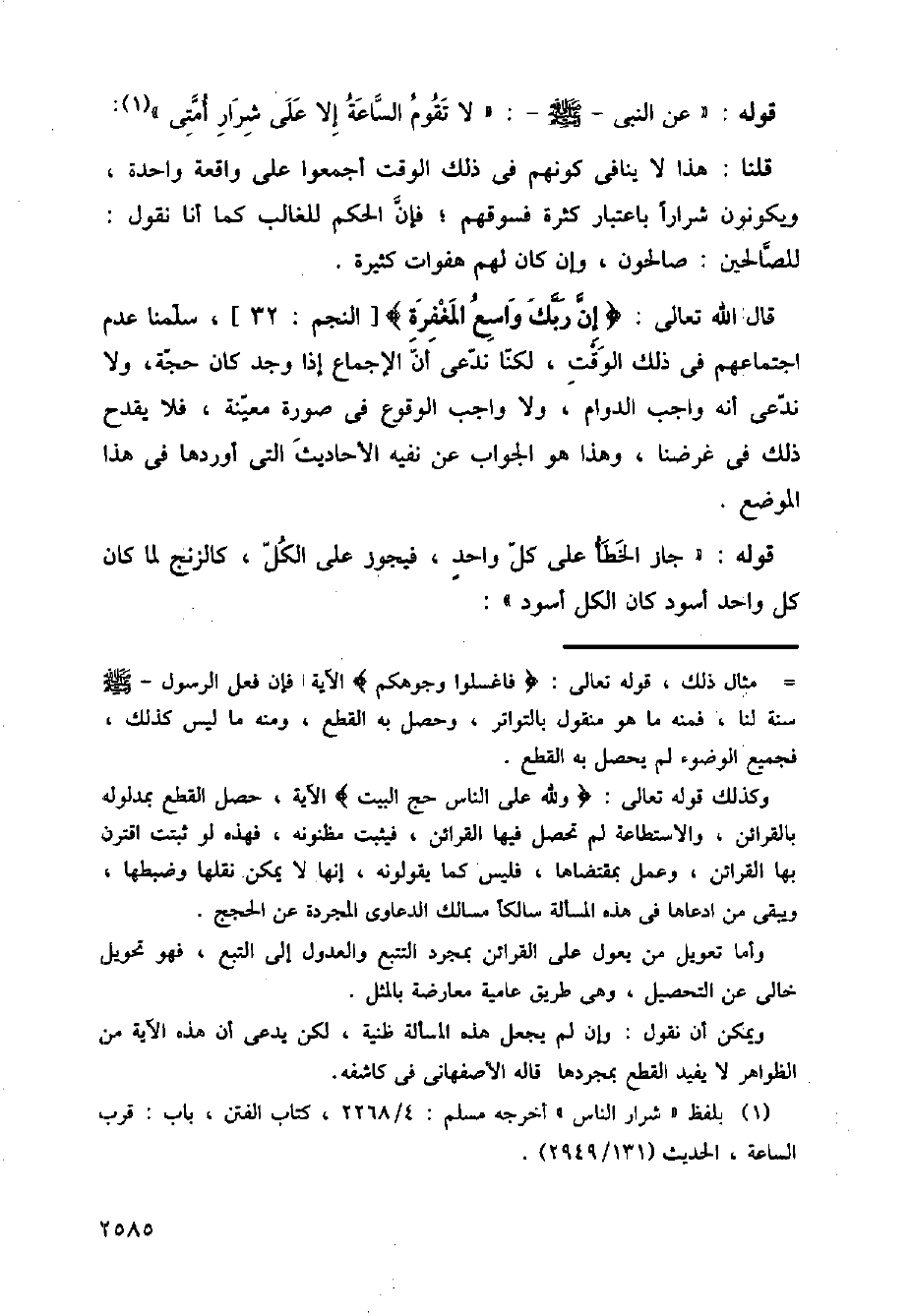 قال الله تعالى:} إن ربك واسع المغفرة {[النجم:32]، سلمنا عدم اجتماعهم في ذلك الوقت، لكنا ندعى أن الإجماع إذا وجد كان حجة، ولا ندعى أنه واجب الدوام، ولا واجب الوقوع في صورة معينة، فلا يقدح ذلك في غرضنا، وهذا هو الجواب عن نفيه الأحاديث التي أوردها في هذا الموضع.
