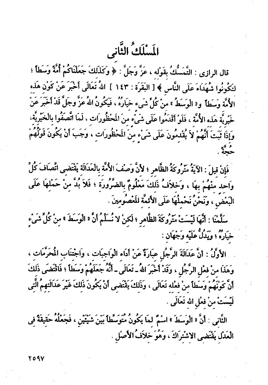 الأول: أن عدالة الرجل عبارة عن أداء الواجبات، واجتناب المحرمات، وهذا من فعل الرجل، وقد أخبر الله - تعالى - أنه جعلهم وسطًا؛ فاقتضى ذلك أن كونهم وسطًا من فعله تعالى، وذلك يقتضي أن يكون ذلك غير عدالتهم التي ليست من فعل الله تعالى.