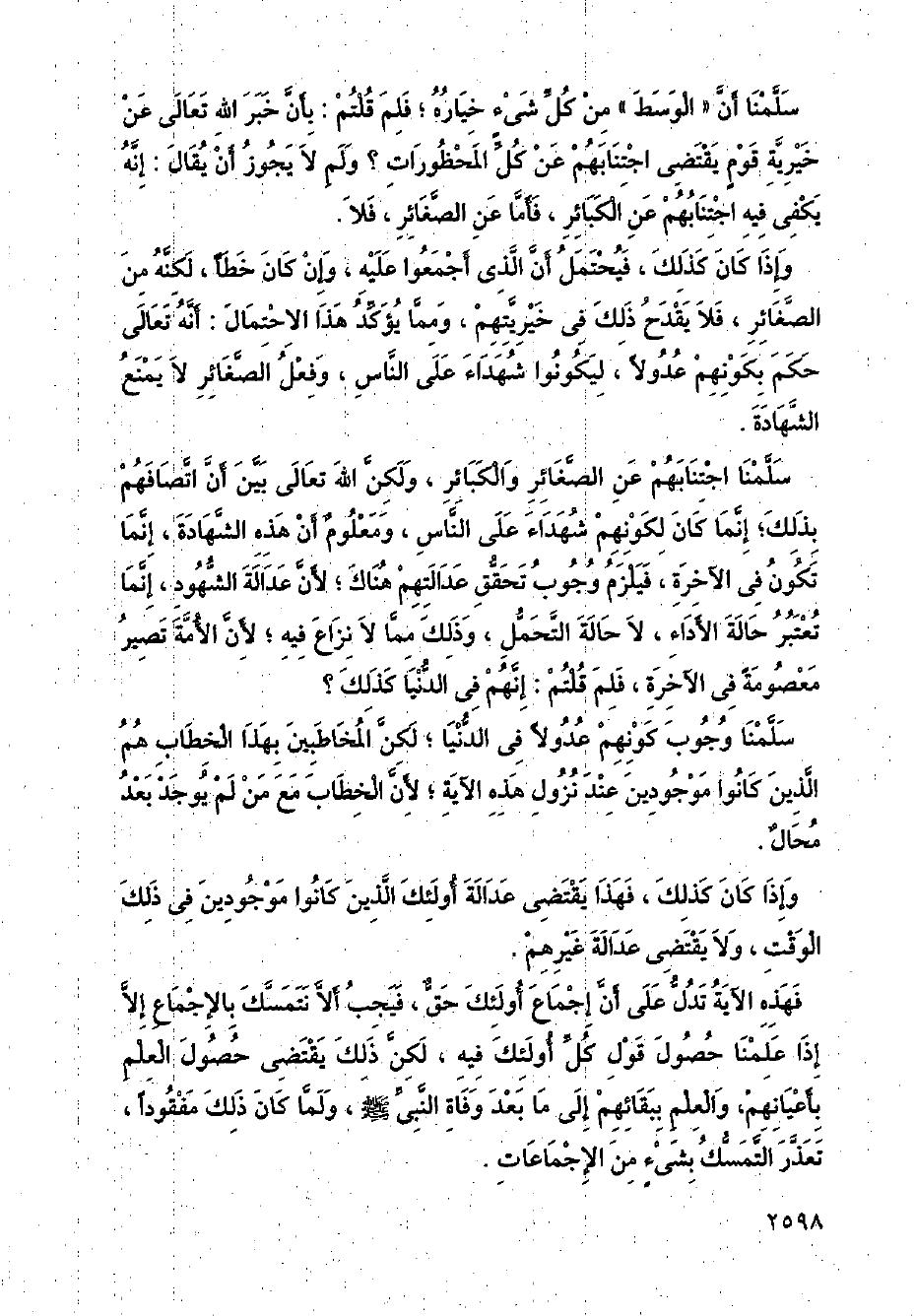 وإذا كان كذلك، فهذا يقتضي عدالة أولئك الذين كانوا موجودين في ذلك الوقت، ولا يقتضي عدالة غيرهم.