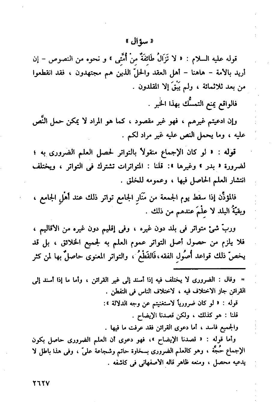 قوله: (لو كان الإجماع منقولا بالتواتر لحصل العلم الضروري به؛ لضرورة (بدر) وغيرها): قلنا: المتواترات تشترك في التواتر، ويختلف انتشار العلم الحاصل فيها، وعمومه للخلق.