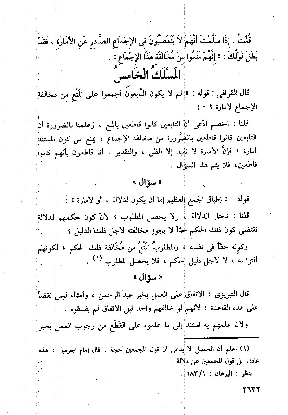 قال القرافي: قوله: (لم لا يكون التابعون أجمعوا على المنع من مخالفة الإجماع لأمارة؟):