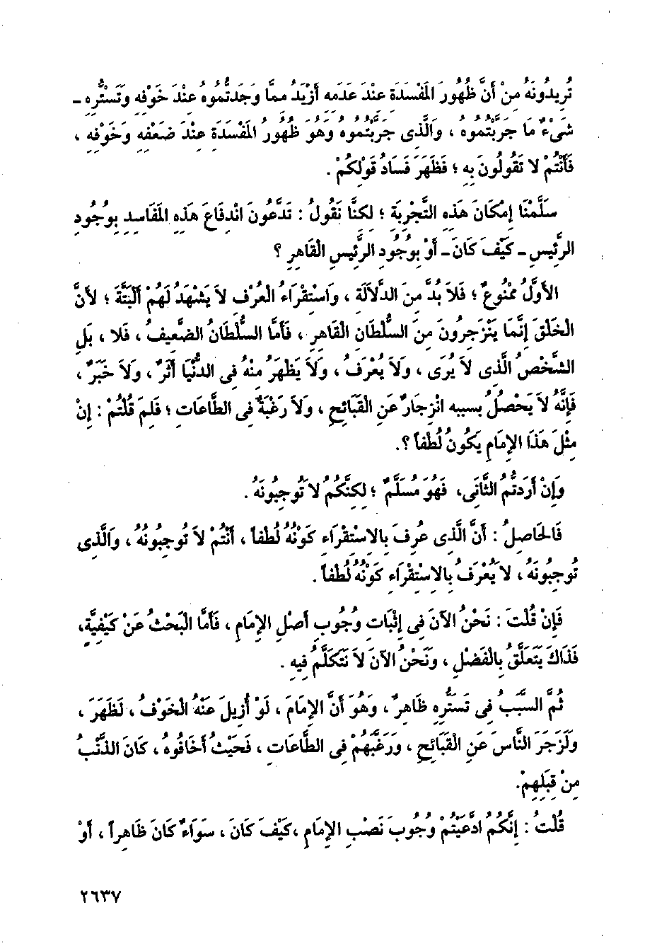 فالحاصل: أن الذي عرف بالاستقراء كونه لطفًا، أنتم لا توجبونه، والذي توجبونه، لا يعرف بالاستقراء كونه لطفًا.