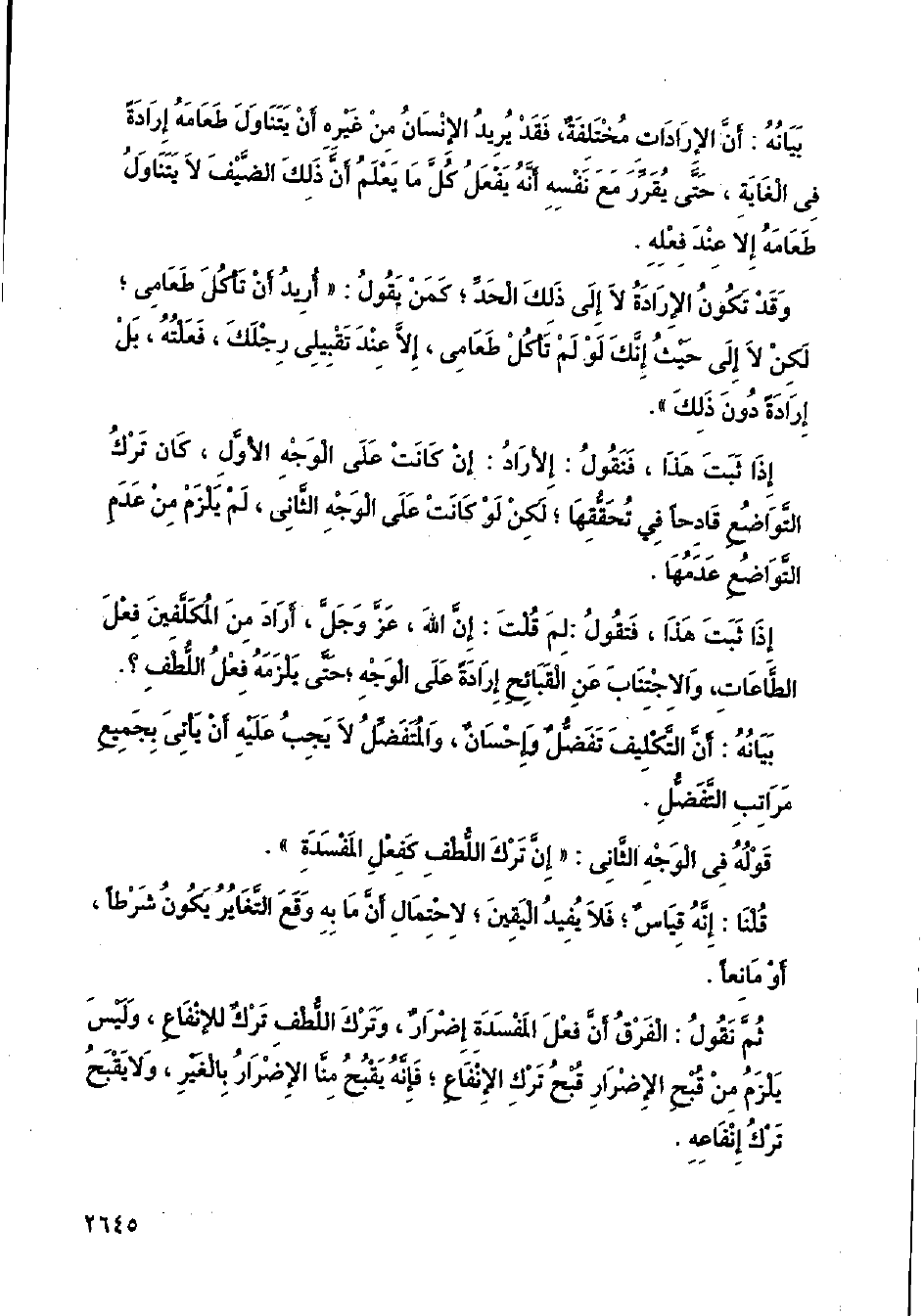 وقد تكون الإرادة لا إلى ذلك الحد؛ كمن يقول: (أريد أن تأكل طعامي؛ لكن لا إلى حيث إنك لو لم تأكل طعامي، إلا عند تقبيلي رجلك، فعلته، بل إرادةً دون ذلك).