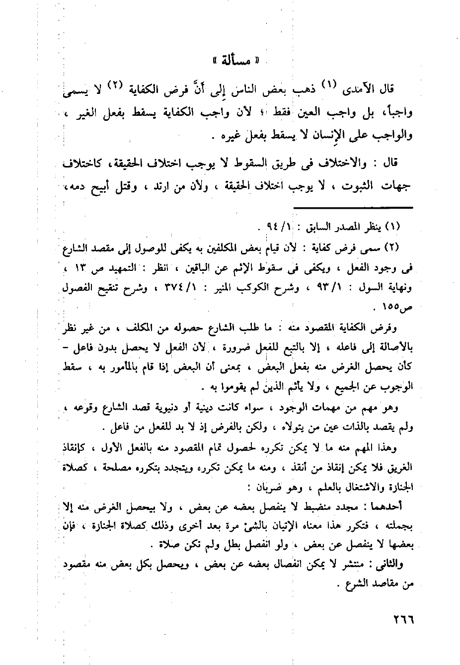 قال الآمدي: ذهب بعض الناس إلى أن فرض الكفاية لا يسمى واجبا، بل واجب العين فقط؛ لأن واجب الكفاية يسقط بفعل الغير والواجب على الإنسان لايسقط بفعل غيره.