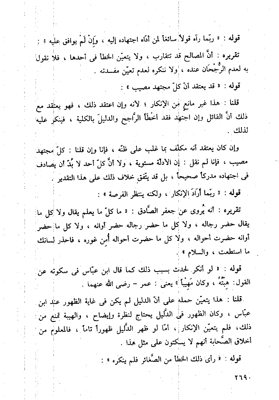 تقريره: أن المصالح قد تتقارب، ولا يتعين الخطأ في أحدها، فلا نقول به لعدم الرجحان عنده، ولا ننكره لعدم تعين مفسدته.