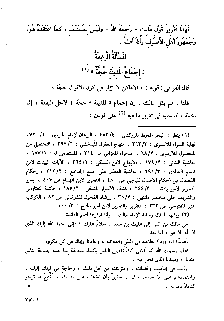 قلنا: لم يقل مالك: إن إجماع (المدينة) حجة؛ لأجل البقعة، إنما اختلف أصحابه في تقرير مذهبه على قولين: