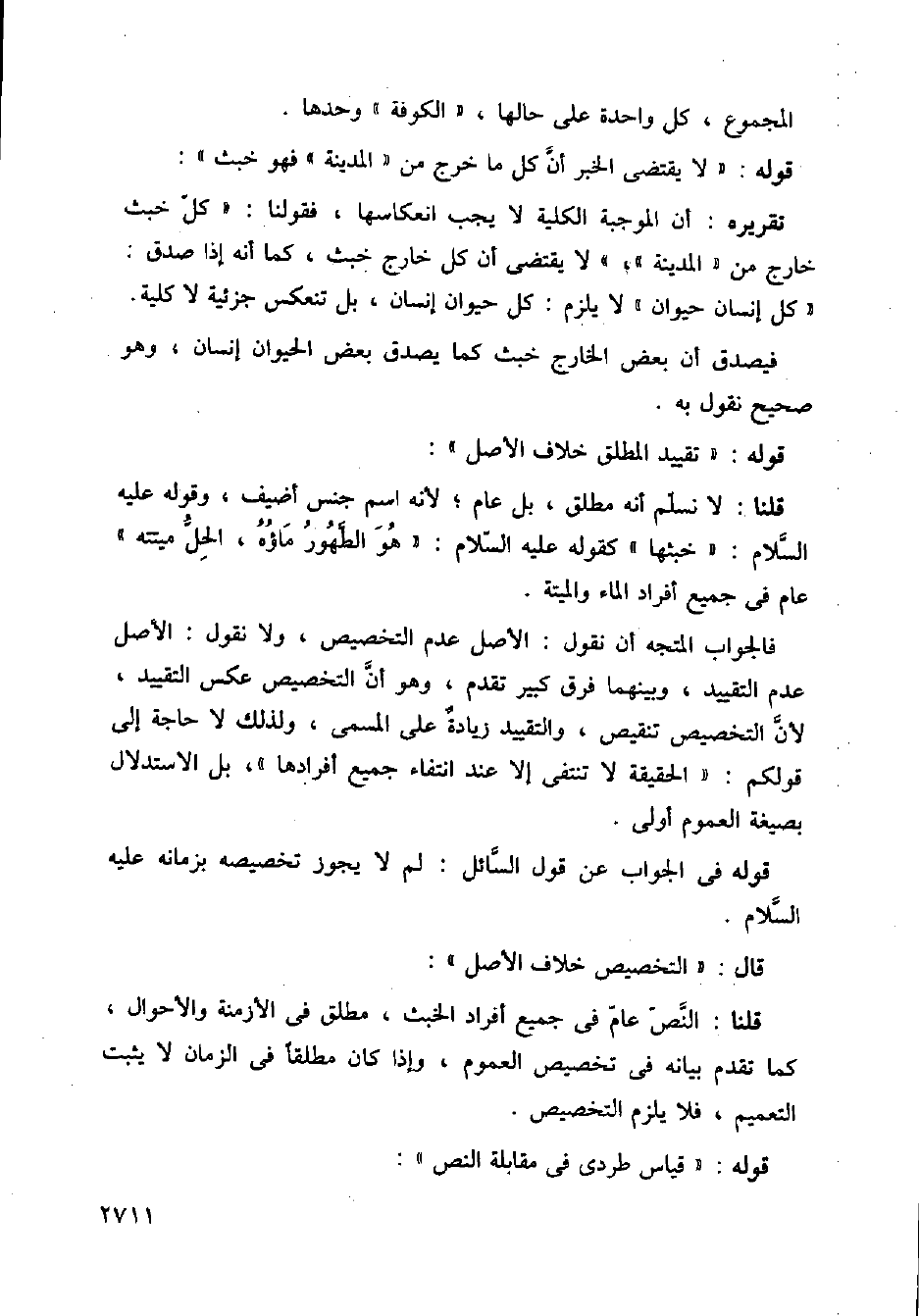 قلنا: النص عام في جميع أفراد الخبث، مطلق في الأزمنة والأحوال، كما تقدم بيانه في تخصيص العموم، وإذا كان مطلقًا في الزمان لا يثبت التعميم، فلا يلزم التخصيص.