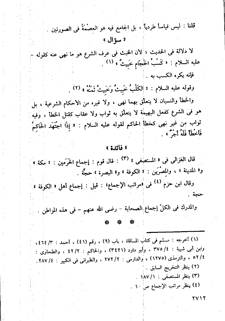 والمدرك في الكل إجماع الصحابة - رضي الله عنهم - في هذه المواطن.