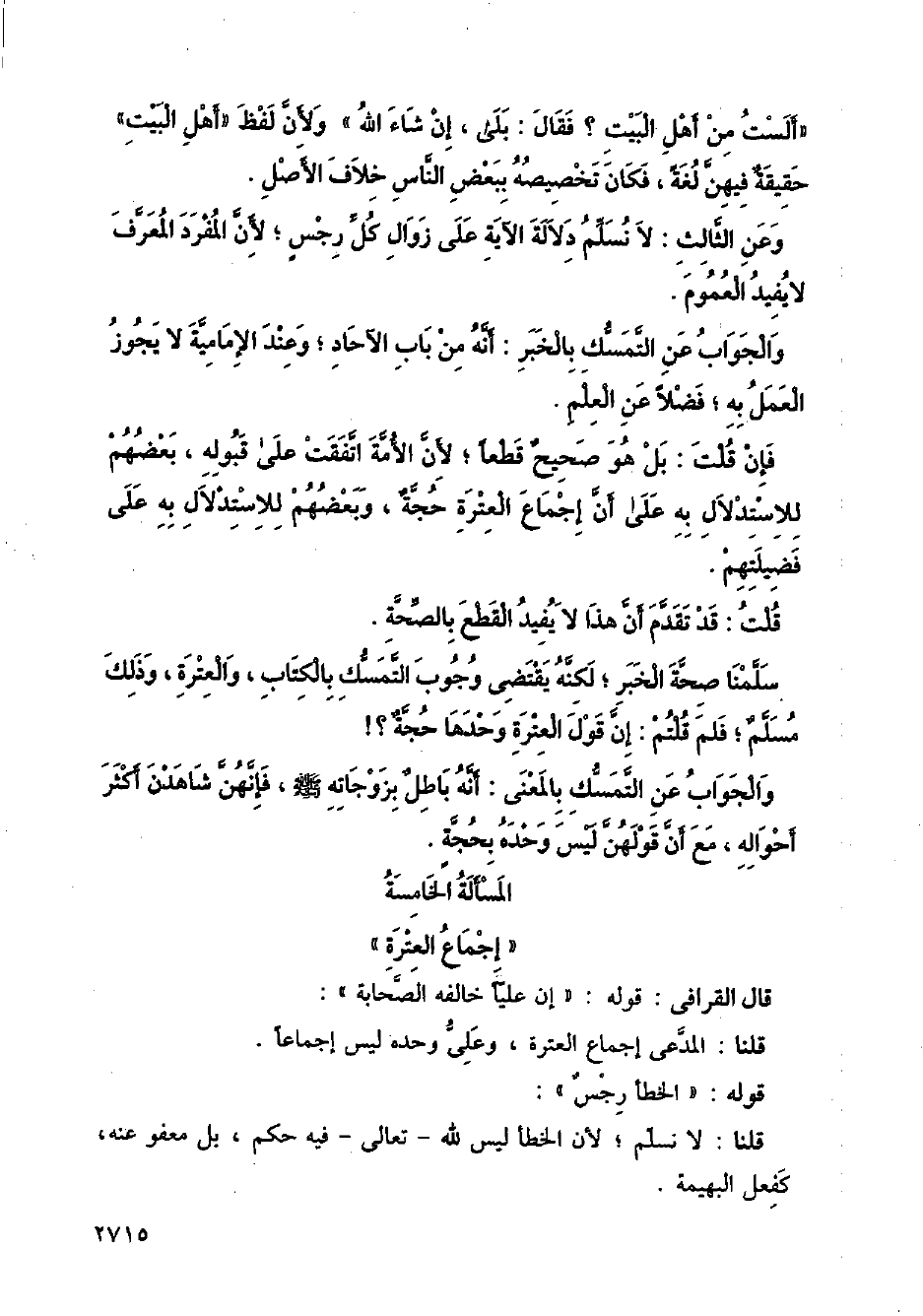 المسألة الخامسة