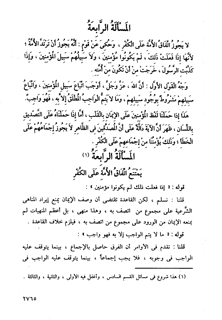 وجه القول الأول: أن الله، عز وجل، أوجب اتباع سبيل المؤمنين، واتباع سبيلهم مشروط بوجود سبيلهم، وما لا يتم الواجب المطلق إلا به، فهو واجب.
