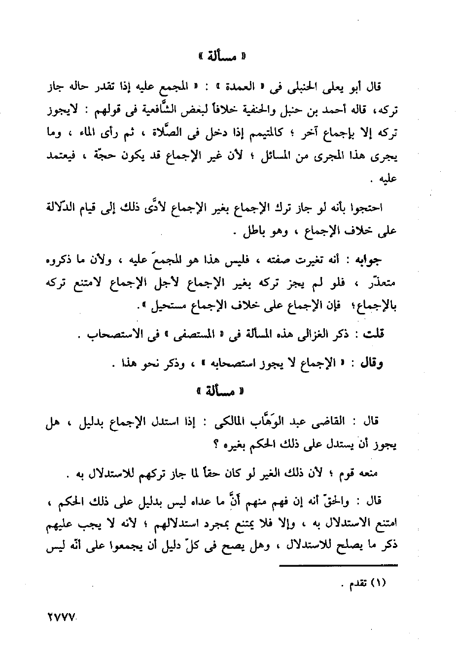 قال: القاضي عبد الوهاب المالكي، إذا استدل الإجماع بدليل، هل يجوز أن يستدل على ذلك الحكم بغيره؟