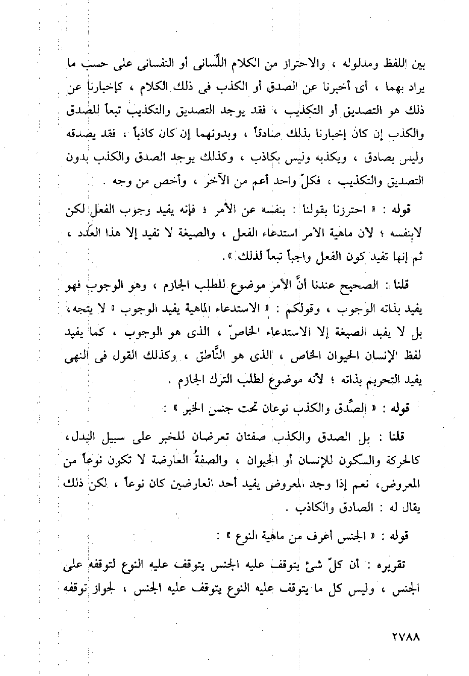 قلنا: بل الصدق والكذب صفتان تعرضان للخبر على سبيل البدل، كالحركة والسكون للإنسان أو الحيوان، والصفة العارضة لا تكون نوعا من المعروض، نعم إذا وجد المعروض يفيد أحد العارضين كان نوعا، لكن ذلك يقال له: الصادق والكاذب.